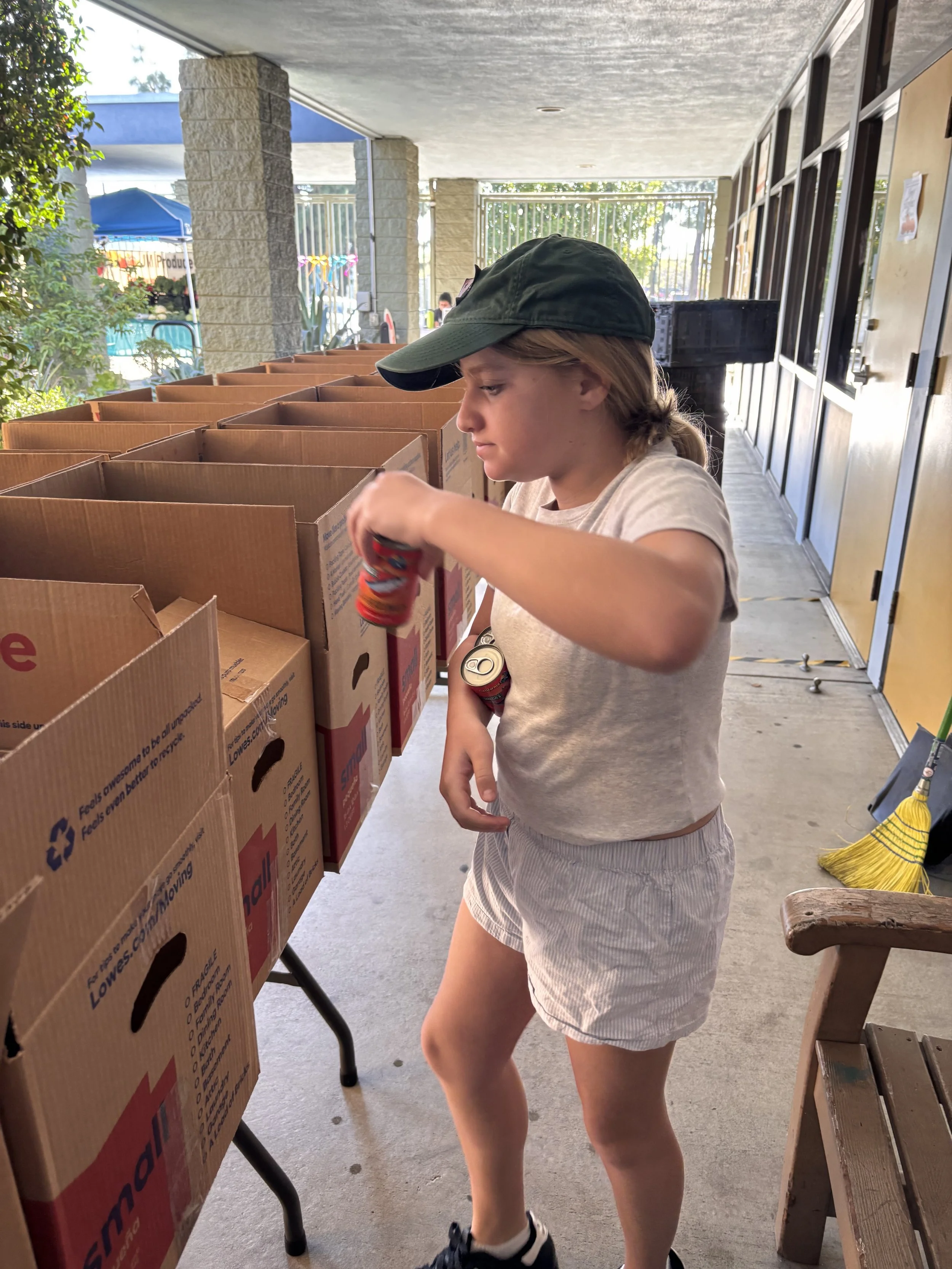 El Nido Family Centers is a great volunteering program! I did the Farmer's Market program, opened to all ages with an adult.  If you wish to volunteer alone, the age requirement is 15. I went to the Pacoima location, about 45 minutes from Santa Monica. That location is below. They also have five other locations too! To the left you will see photos from when I went, and descriptions for each photo. When I arrived, I was warmly welcomed, and directed to our tables. I was taught how to make boxes, and tape them to hold the produce. We then put kale, potatoes, canned sardines, broccoli and lettuce into them. When people started arriving, I brought a cart into the pantry to also put eggs and milk into the boxes. This was so the dairy wouldn't get spoiled. Once all the boxes were taken, we cleaned up and got to help out with other jobs too, such as bingo and helping kids with El Nido's garden! That was our time at El Nido Farmer's Market, a total of 2 hours helping with produce, and a couple of hours helping out other jobs!